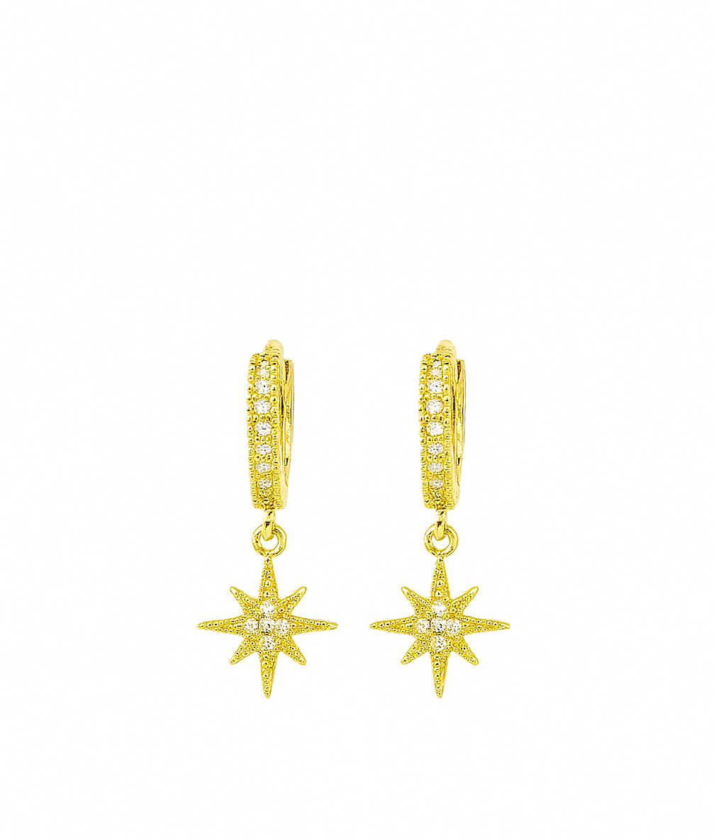Add a touch of sparkle to your look with Gold star Huggies. These stylish earrings feature star-shaped accents that will elevate any outfit. Perfect for everyday wear or special occasions, these Huggies will make you shine like a star.