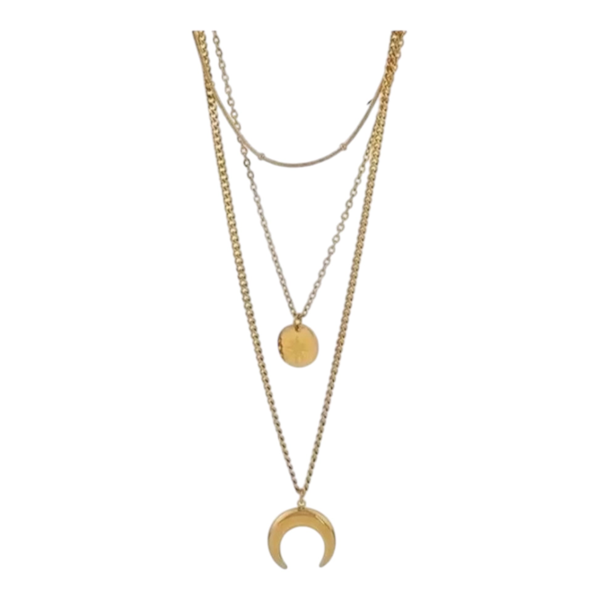 Elevate your outfit with the Luna Necklace. Its bold layered design makes a statement while adding a touch of sophistication. Perfect for any occasion, this necklace is sure to turn heads and compliment your unique style. Channel your inner confidence with the Luna Necklace.